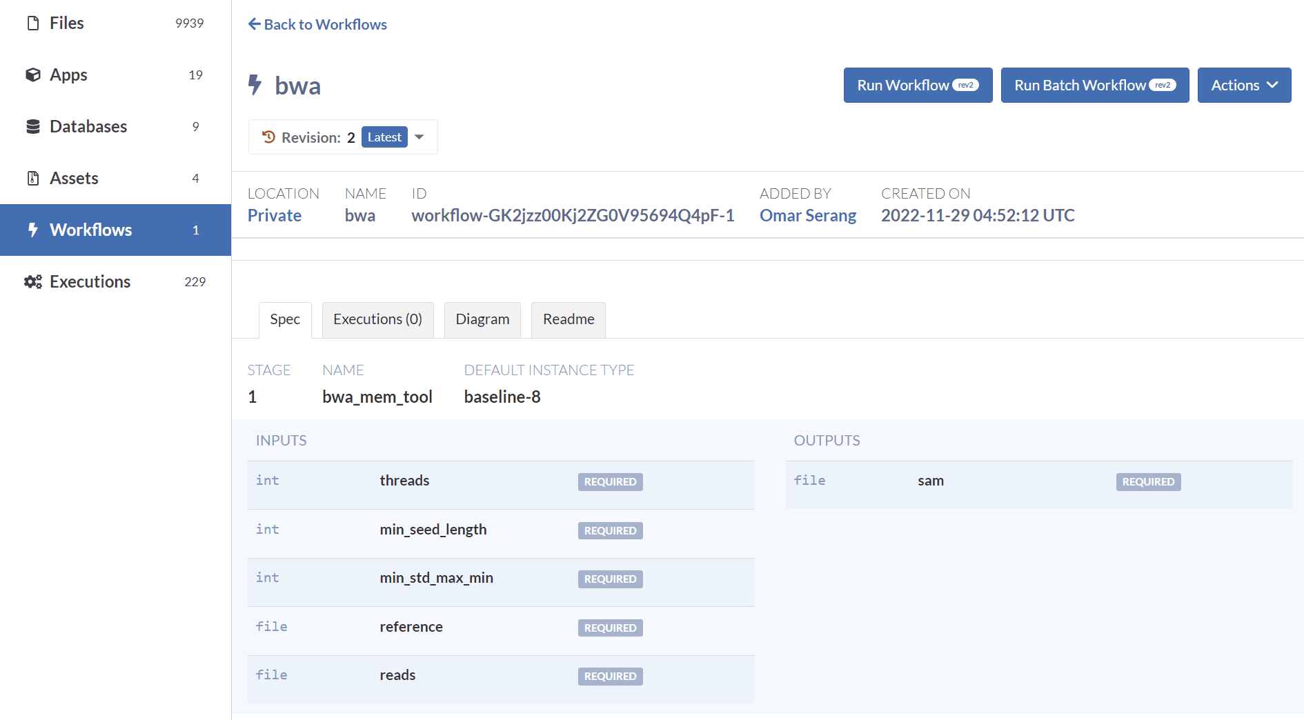 Like workflows created through the web inteface, WDL-based workflows can be updated and run.