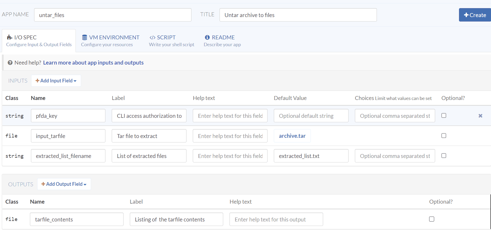 emit "tarfile" "$tar_filename"Enter a Readme and Create the app.